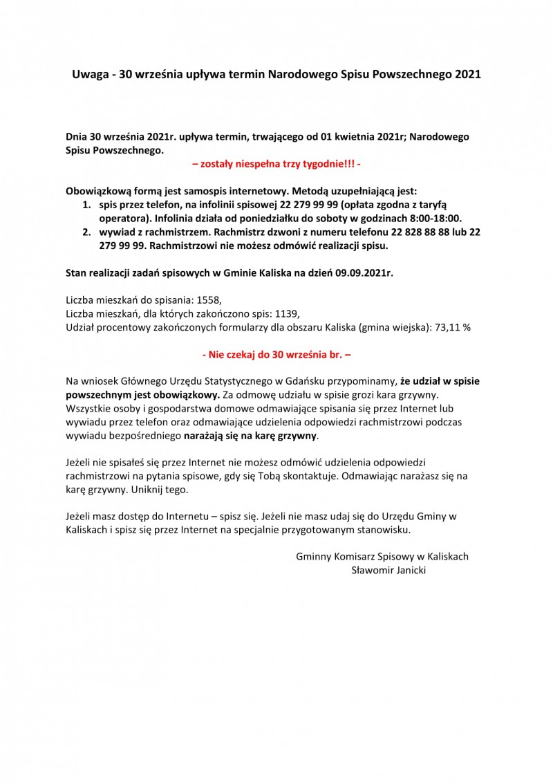 30 września upływa termin Narodowego Spisu Powszechnego 2021