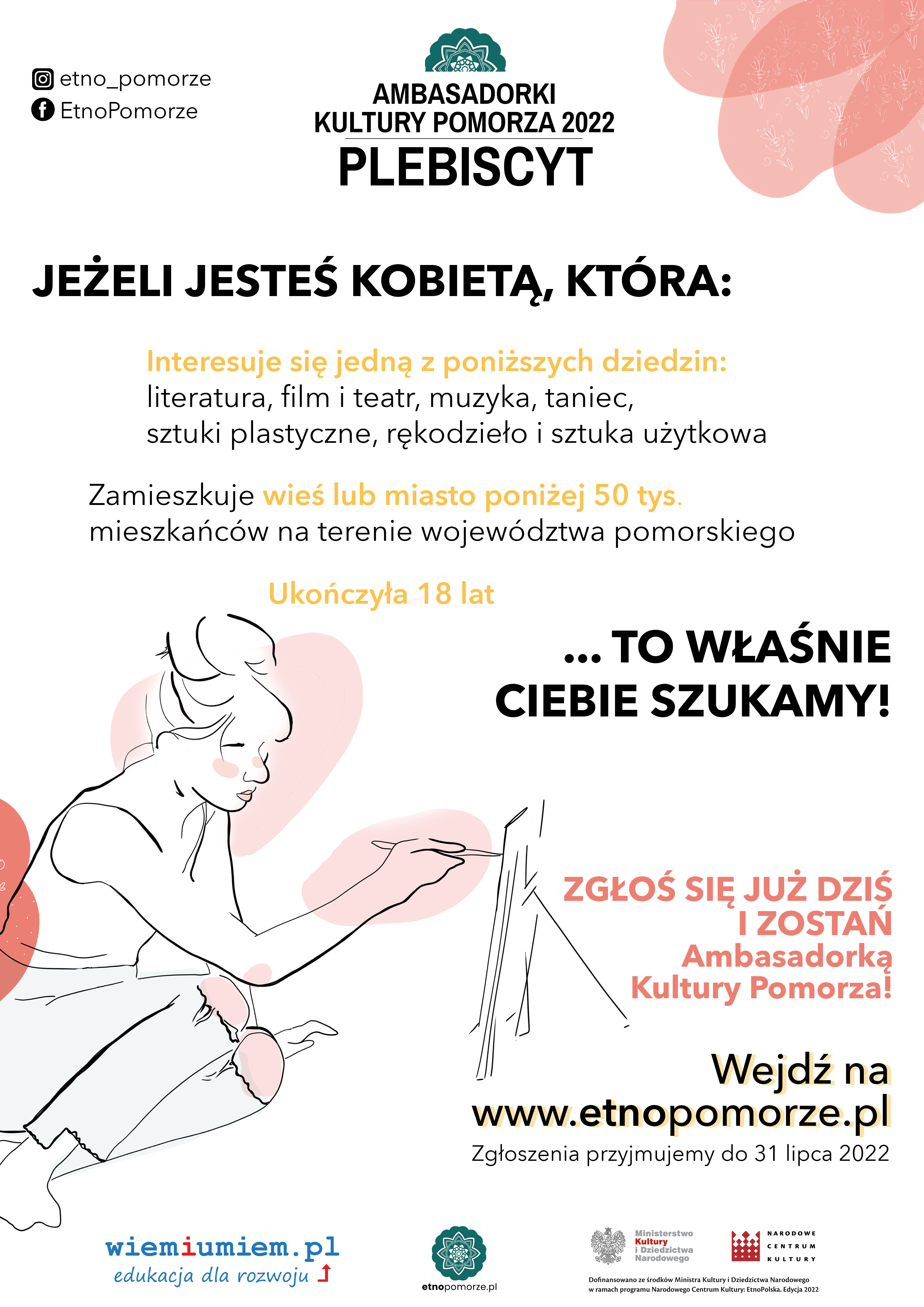 Serdecznie zapraszamy do udziału w drugiej edycji plebiscytu na “Ambasadorki Kultury Pomorza 2022”.