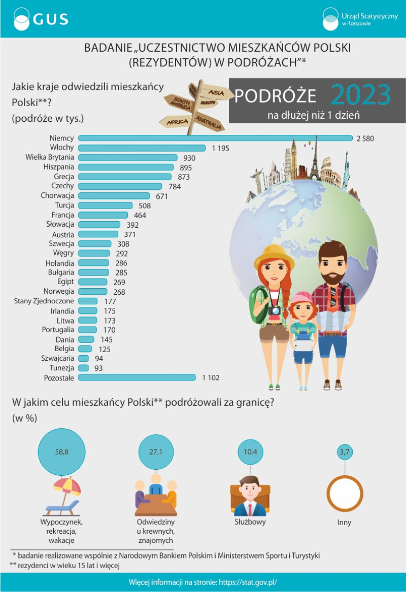 Celem badania jest zebranie danych o krajowych i zagranicznych podróżach członków gospodarstw domowych w III kwartale 2024 roku. Udzielone informacje dostarczą kompleksowej wiedzy o skali uczestnictwa mieszkańców Polski w podróżach, rodzajach usług turystycznych, jak również o poziomie wydatków przeznaczonych na ten cel.