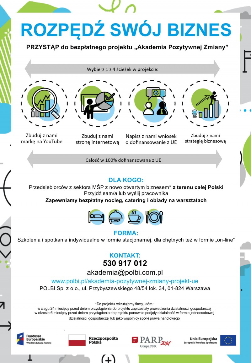 POLBI Sp. z o.o. zaprasza do wzięcia udziału w bezpłatnym projekcie dofinansowanym w 100% ze środków unijnych pt. „AKADEMIA POZYTYWNEJ ZMIANY”, realizowanym w terminie 01.03.2020-31.12.2021.