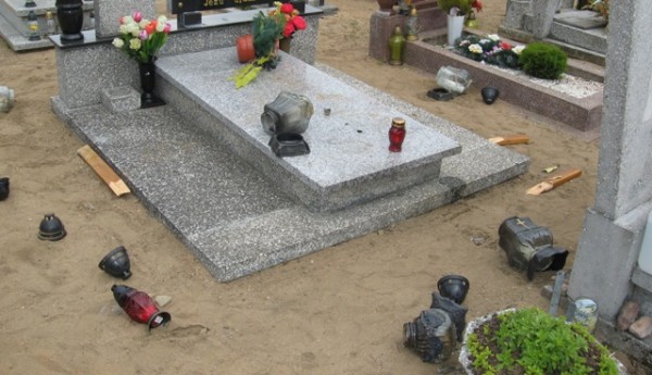 Ostatniego dnia maja br. policjanci z kaliskiego posterunku otrzymali zgłoszenie, że nieznani sprawcy zdewastowali kilkanaście grobów na miejscowym Cmentarzu Komunalnym. Wandale skakali po pomnikach, wyrywali i łamali krzyże oraz tłukli szklane elementy ozdobne nagrobków.