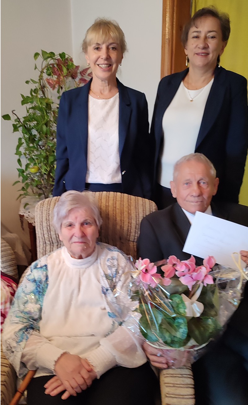 Z okazji 60-lecia pożycia małżeńskiego z gratulacjami i życzeniami: zdrowia oraz wszelkiej pomyślności, odwiedzili Dostojnych Jubilatów: Sekretarz Gminy Kaliska- Bożena Jeleniewska oraz Kierownik USC Kaliska- Beata Wysokińska.