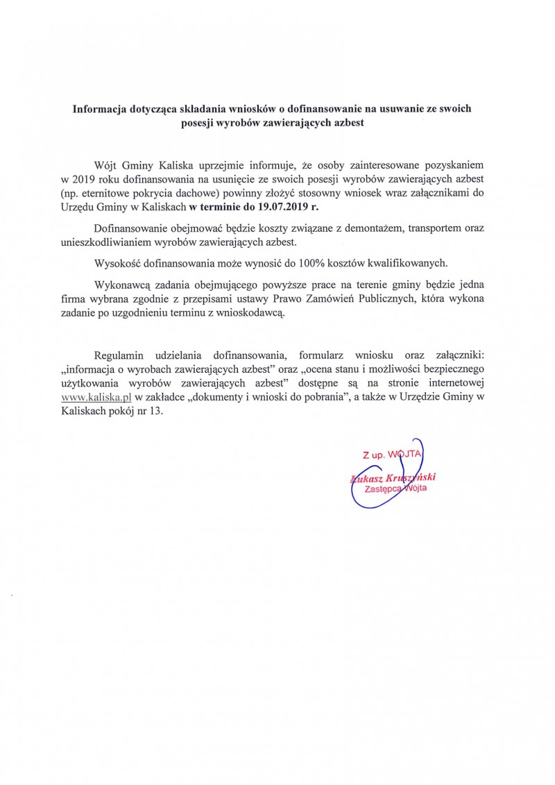 Informacja dot. składania wniosków o dofinansowanie na usuwanie azbestu