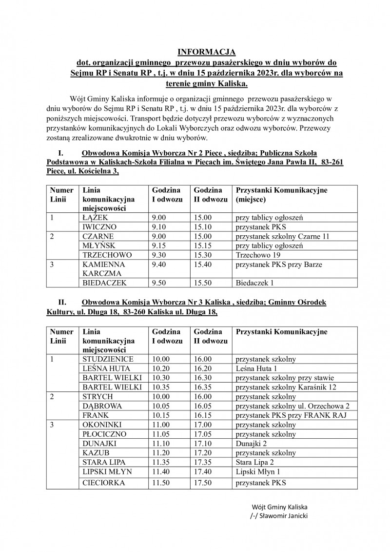 Informacja o organizacji gminnego przewozu pasażerskiego w dniu wyborów do Sejmu RP i Senatu RP