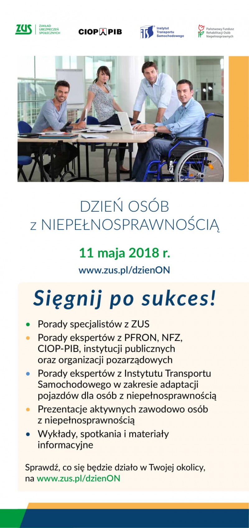 Inspektorat Zakładu Ubezpieczeń Społecznych w Starogardzie Gdańskim organizuje 11 maja 2018 r. Dzień Osób z Niepełnosprawnością.
