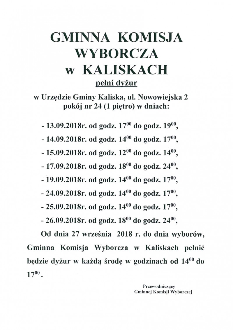 Informacja o pełnieniu dyżuru Gminnej Komisji Wyborczej