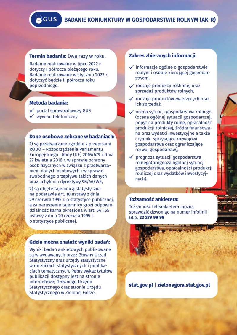 Informacja o przeprowadzeniu Badania Koniunktury w Gospodarstwach Rolnych
