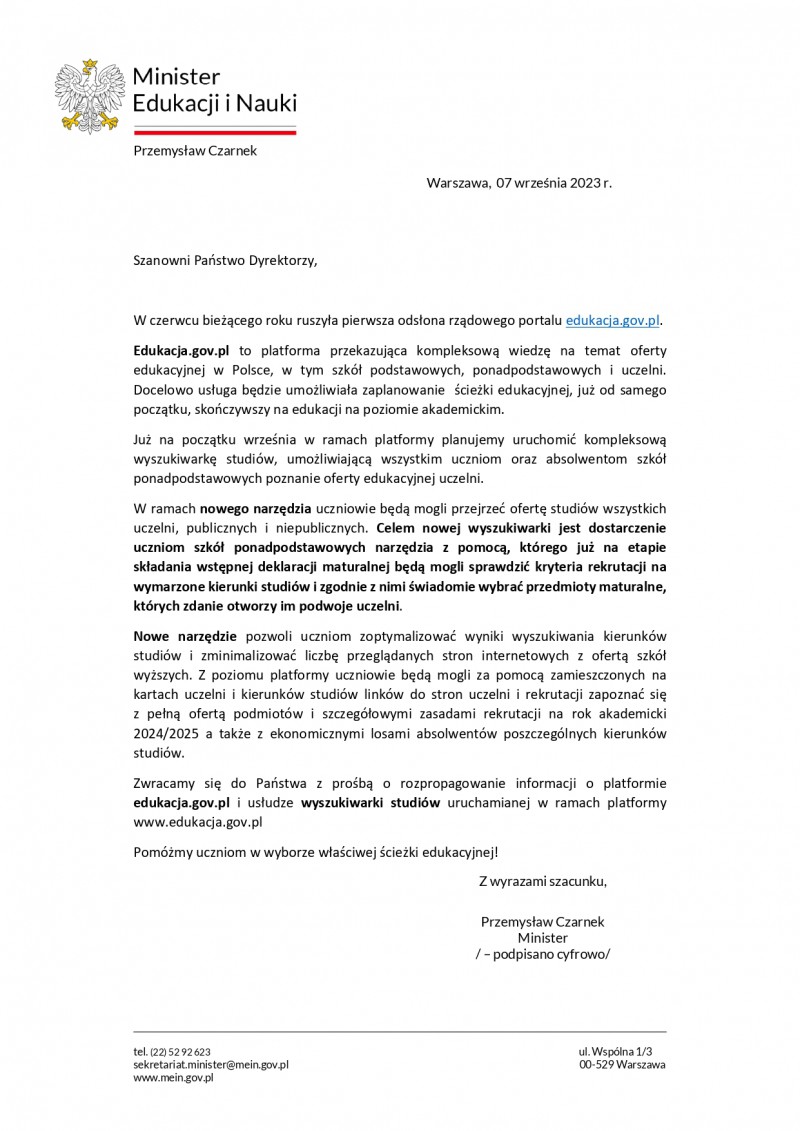 Informacja w sprawie uruchomienia nowego narzędzia dla maturzystów do wyszukiwania kierunków studiów
