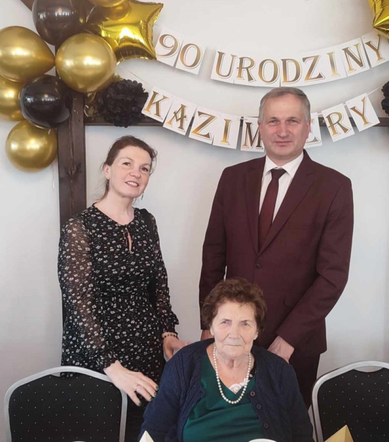 Pani Kazimiera wraz z bliskimi serdecznie przyjęła gości. Jubilatka jest pogodną i sympatyczną osobą, podczas uroczystości opowiadała o swoim życiu i rodzinie. Wychowała 10 dzieci, doczekała się 24 wnuków i 25 prawnuków.