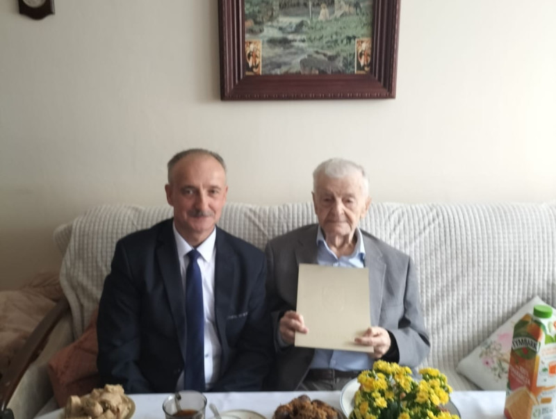 Z tej okazji w imieniu Wójta Gminy Kaliska, Jubilata odwiedził Pan Andrzej Sabiniarz - Kierownik Referatu Ochrony Środowiska i Infrastruktury. Pan Andrzej złożył Panu Henrykowi najserdeczniejsze życzenia oraz wręczył drobny upominek.