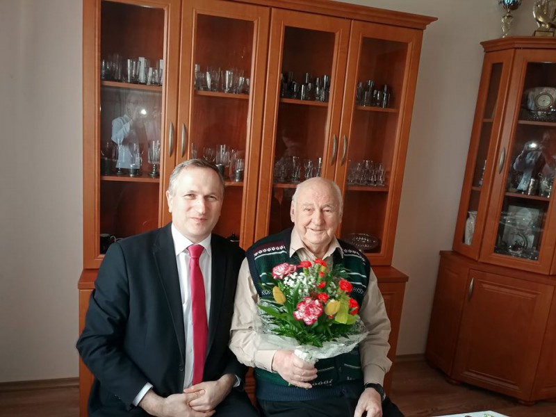 W niedzielę 23.02.2020 roku piękny jubileusz 92 urodzin obchodził Pan Alfons Ossowski z Kalisk. Z tej okazji życzenia Jubilatowi w dniu dzisiejszym czyli w poniedziałek złożył Wójt Gminy Kaliska Sławomir Janicki wraz z Kierownikiem Gminnego Ośrodka Pomocy Społecznej w Panią Moniką Szmaglińską.