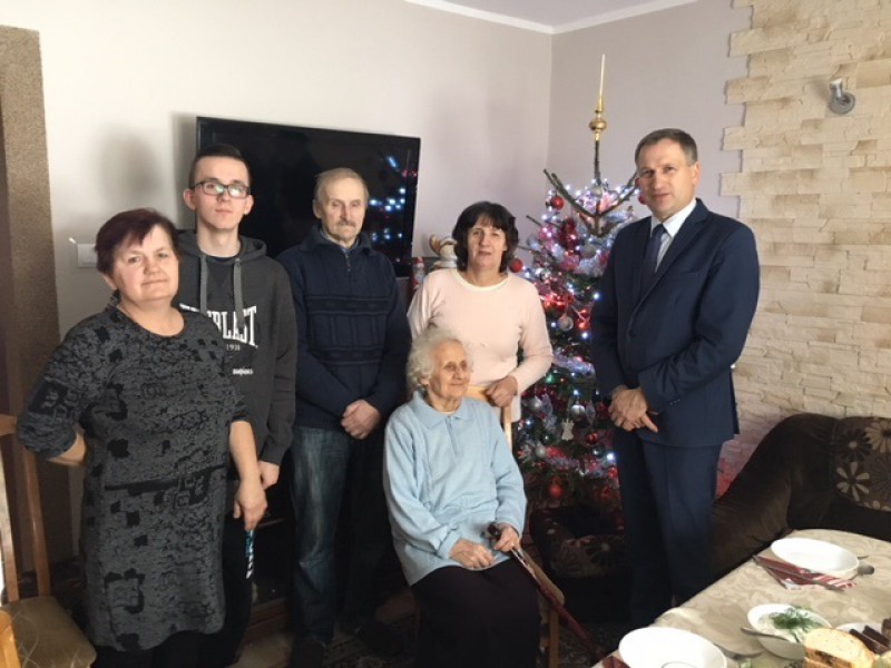 W dniu 17.01.2018 roku Jubileusz 92 urodzin obchodziła Pani Agata Zielińska z miejscowości Czarne. Z tej okazji życzenia Jubilatce złożył osobiście Wójt Gminy Kaliska Pan Sławomir Janicki wraz z Kierownikiem Gminnego Ośrodka Pomocy Społecznej w Kaliskach Panią Moniką Szmaglińską. Pani Agata, osoba o ogromnej pogodzie ducha i znakomitej kondycji przyjęła gości kawą i urodzinowym ciastem wspólnie z najbliższą rodziną. Wójt składając w imieniu własnym, władz samorządowych i mieszkańców Gminy gratulacje Pani Agacie wręczył kwiaty i upominek oraz życzył wielu lat życia w zdrowiu, dobrym samopoczuciu i pogodzie ducha. W miłej atmosferze Pani Agata wraz z najbliższymi opowiadała co w ciągu roku od czasu naszych odwiedzin zmieniło się w jej życiu. Drogiej Jubilatce życzymy co najmniej 100 lat!