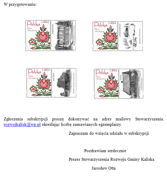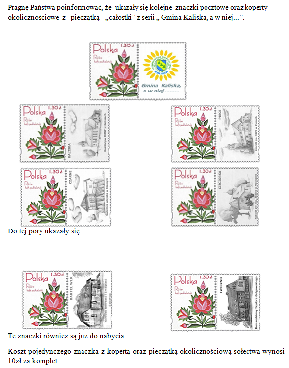 Kolejne znaczki z serii „ Gmina Kaliska, a w niej ...
