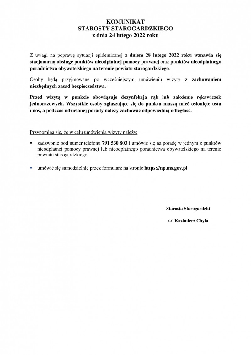 Komunikat o wznowieniu nieodpłatnej pomocy prawnej