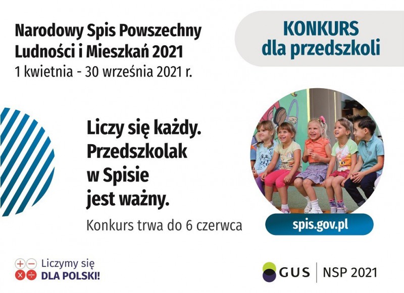 Aby wziąć udział konkursie należy wykonać nagranie/zdjęcie pracy dzieci w wieku przedszkolnym, zachęcające odbiorcę/widza/rodziców/dziadków do udziału w spisie powszechnym NSP 2021. Sposób realizacji – dowolny, czyli może to być np. wiersz, piosenka, skecz, inscenizacja, film, teledysk itp. Pliki należy przesłać wraz z odpowiednimi dokumentami do 6 czerwca na adres gdansk.stat@gmail.com. Przed przystąpieniem do konkursu prosimy o zapoznanie się z regulaminem.