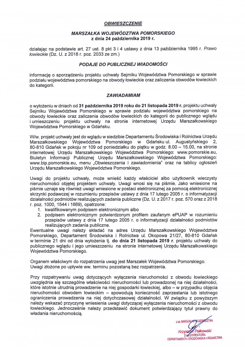 Obwieszczenie w sprawie podziału województwa pomorskiego na obwody łowieckie