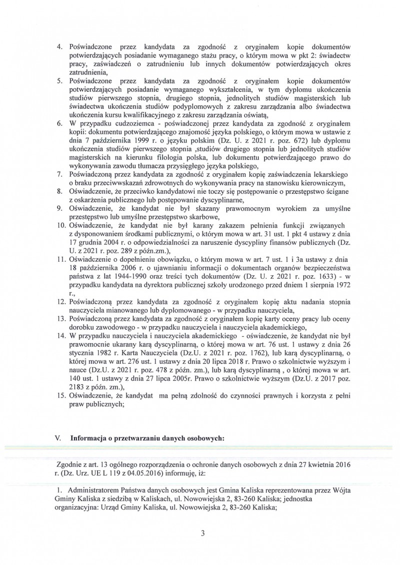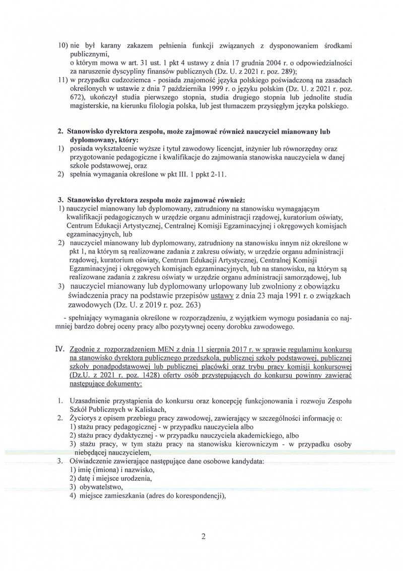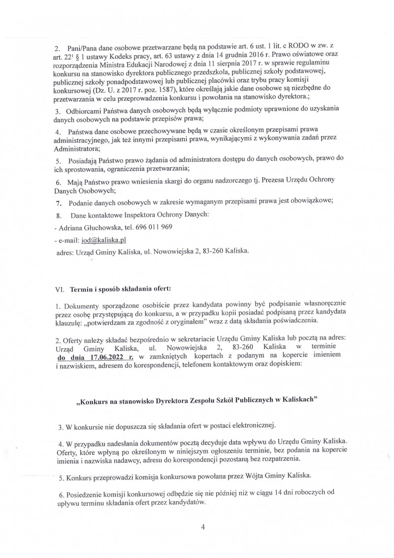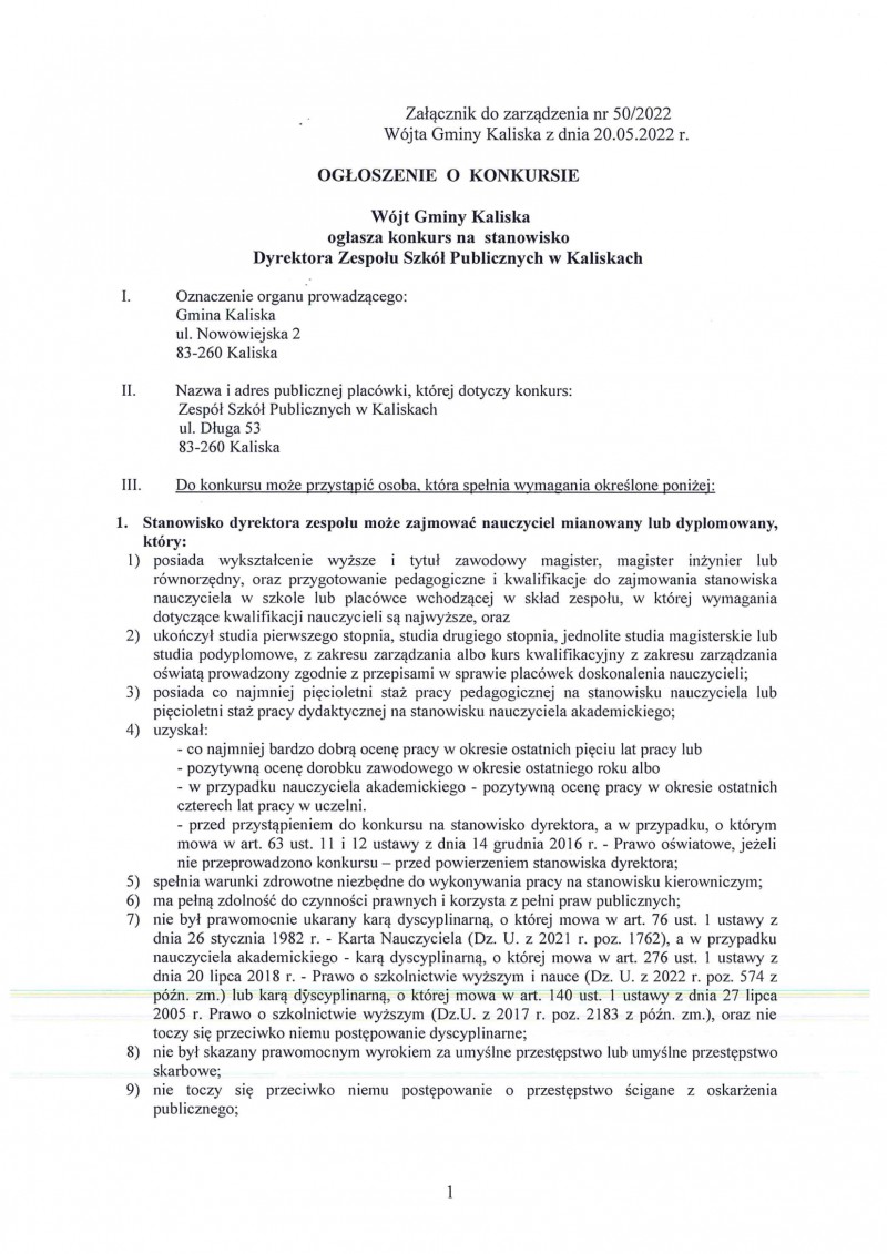 Ogłoszenie o konkursie na stanowisko Dyrektora ZSP w Kaliskach