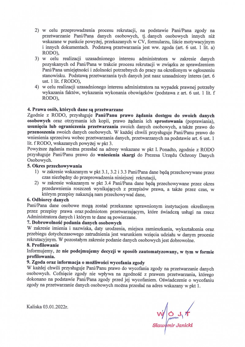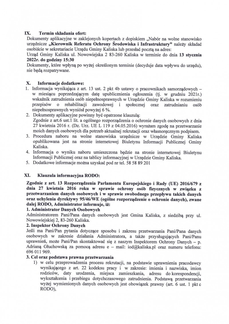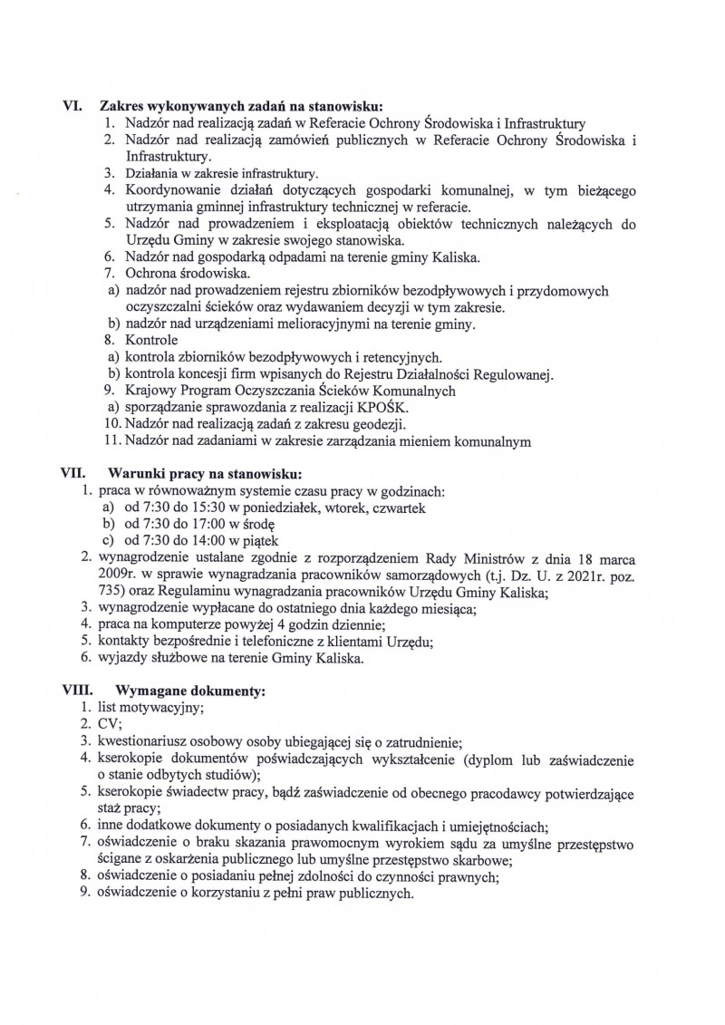 Ogłoszenie o naborze na wolne stanowisko pracy ,,Specjalista ds. techniczno-administracyjnych - Inspektor''