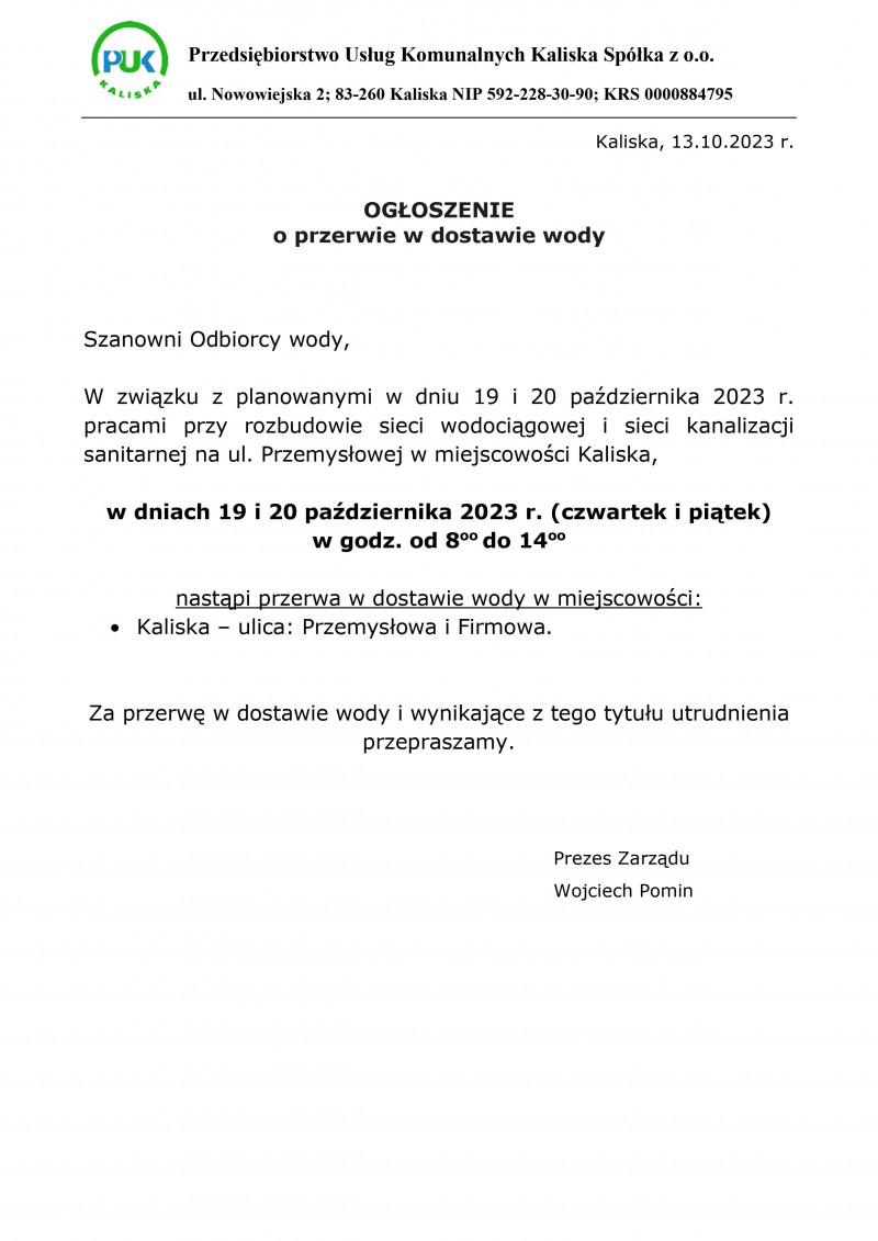 Budowa sieci kanalizacji sanitarnej, rozbudowa i przebudowa sieci wodociągowej dla miejscowości Cieciorka, Dąbrowa, Iwiczno wraz z rozbudową oczyszczalni ścieków w Kaliskach