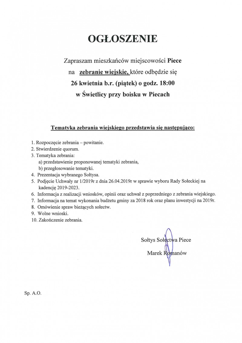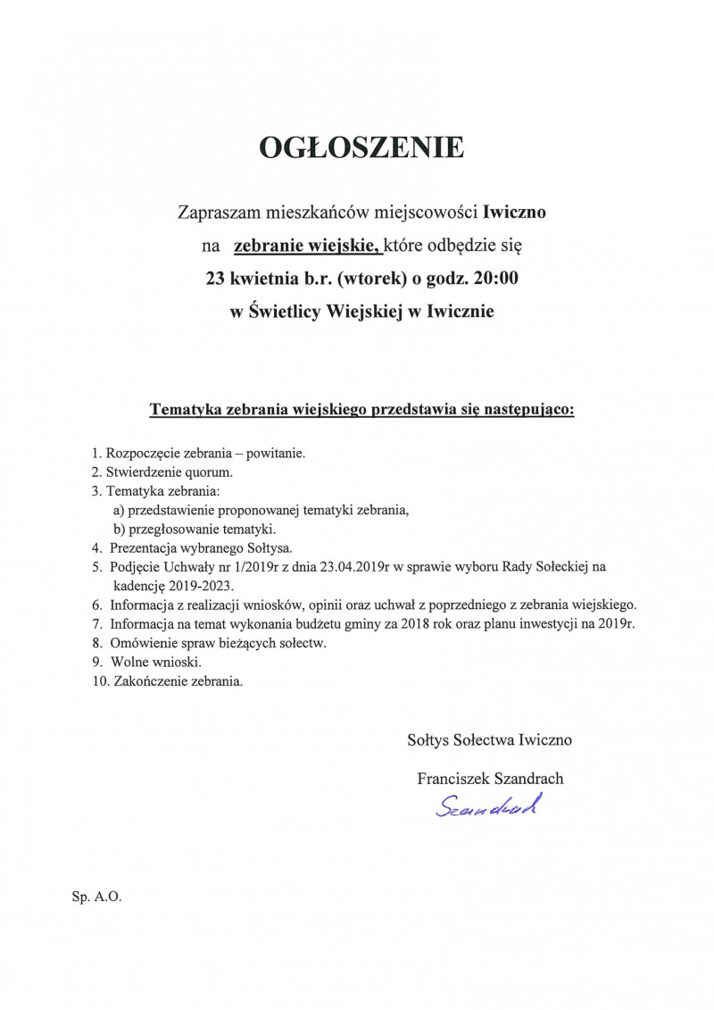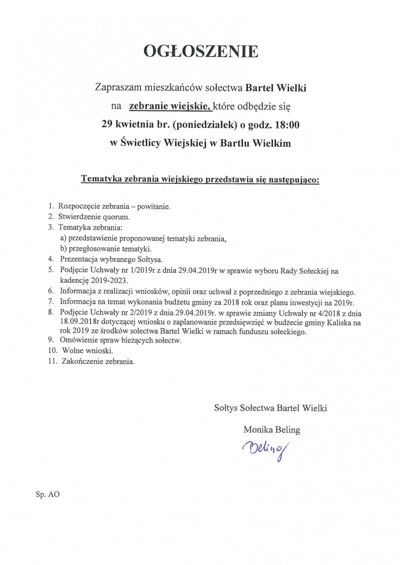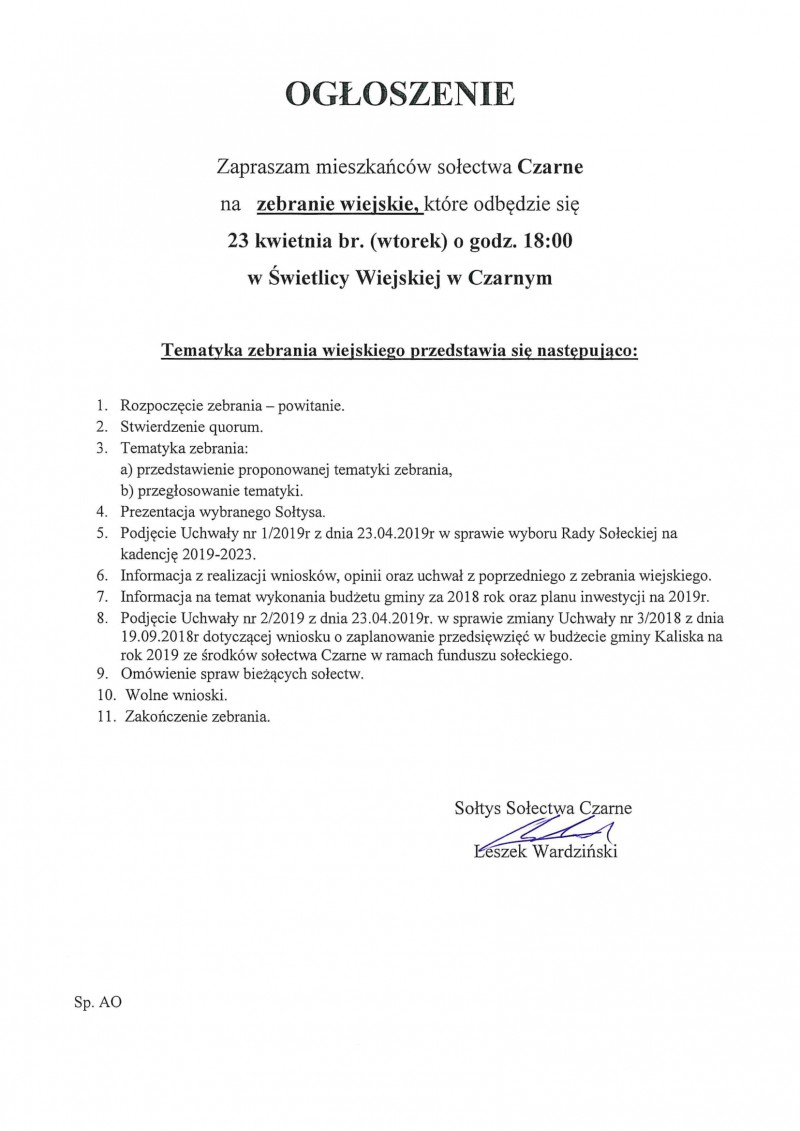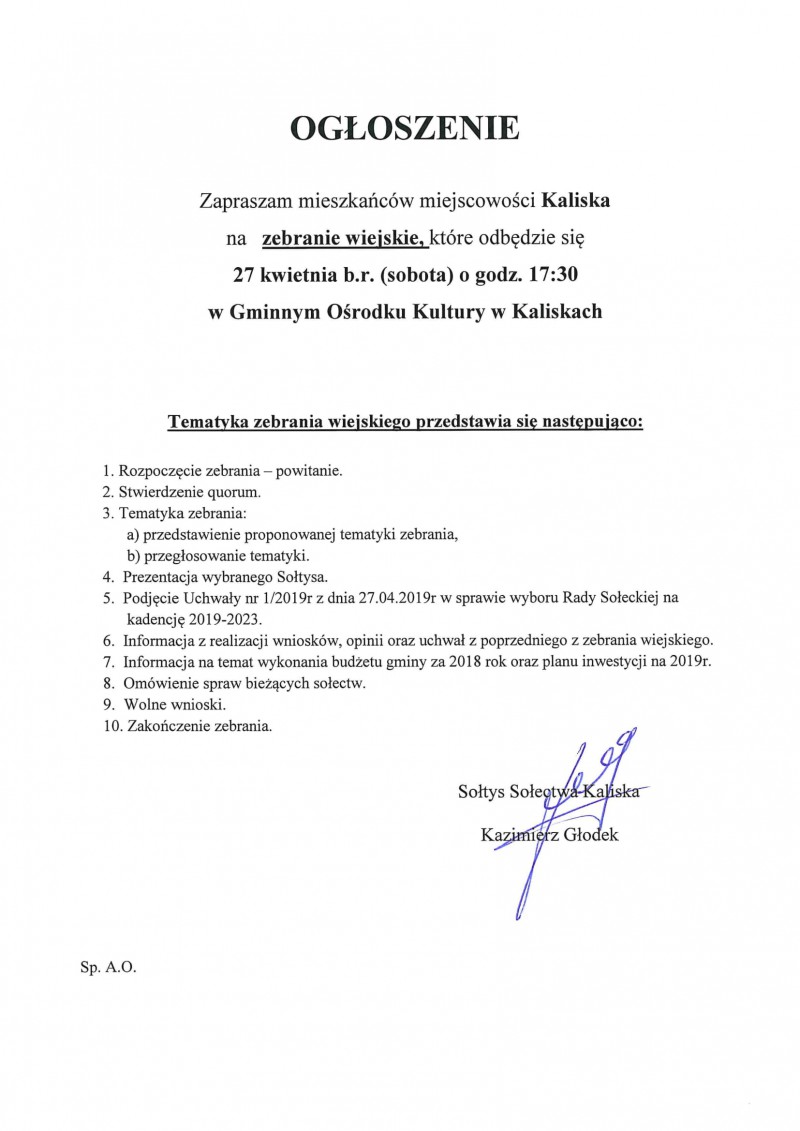 Zaproszenie na XXIII Sesję Rady Gminy Kaliska