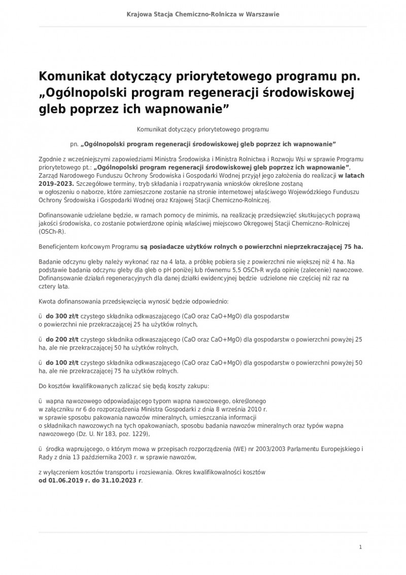 Ogólnopolski program regeneracji środowiskowej gleb poprzez ich wapnowanie
