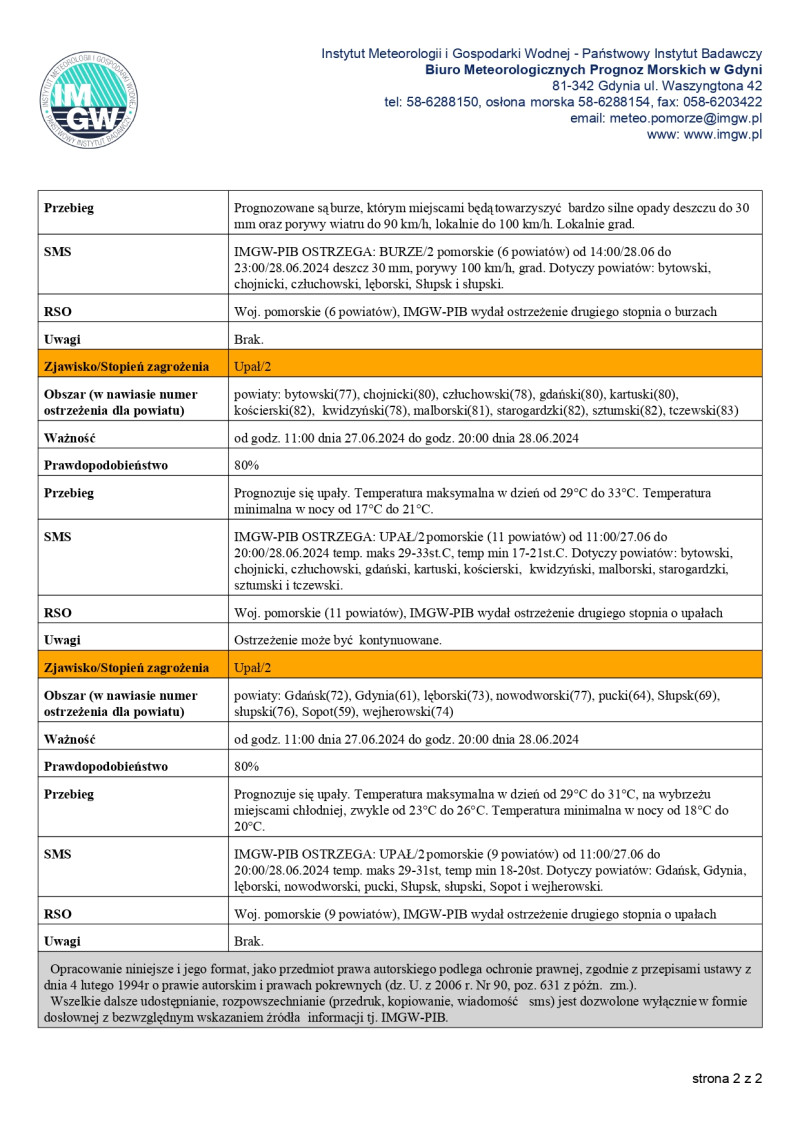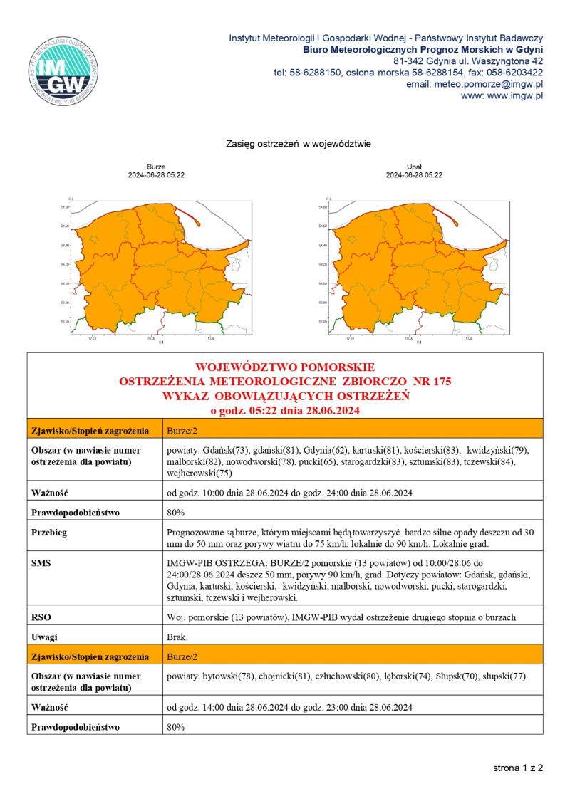 Ostrzeżenie meteorologiczne - Burze i silny wiatr