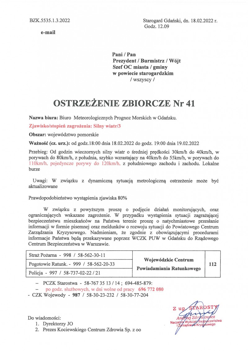 Ostrzeżenie o silnym wietrze