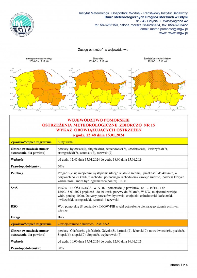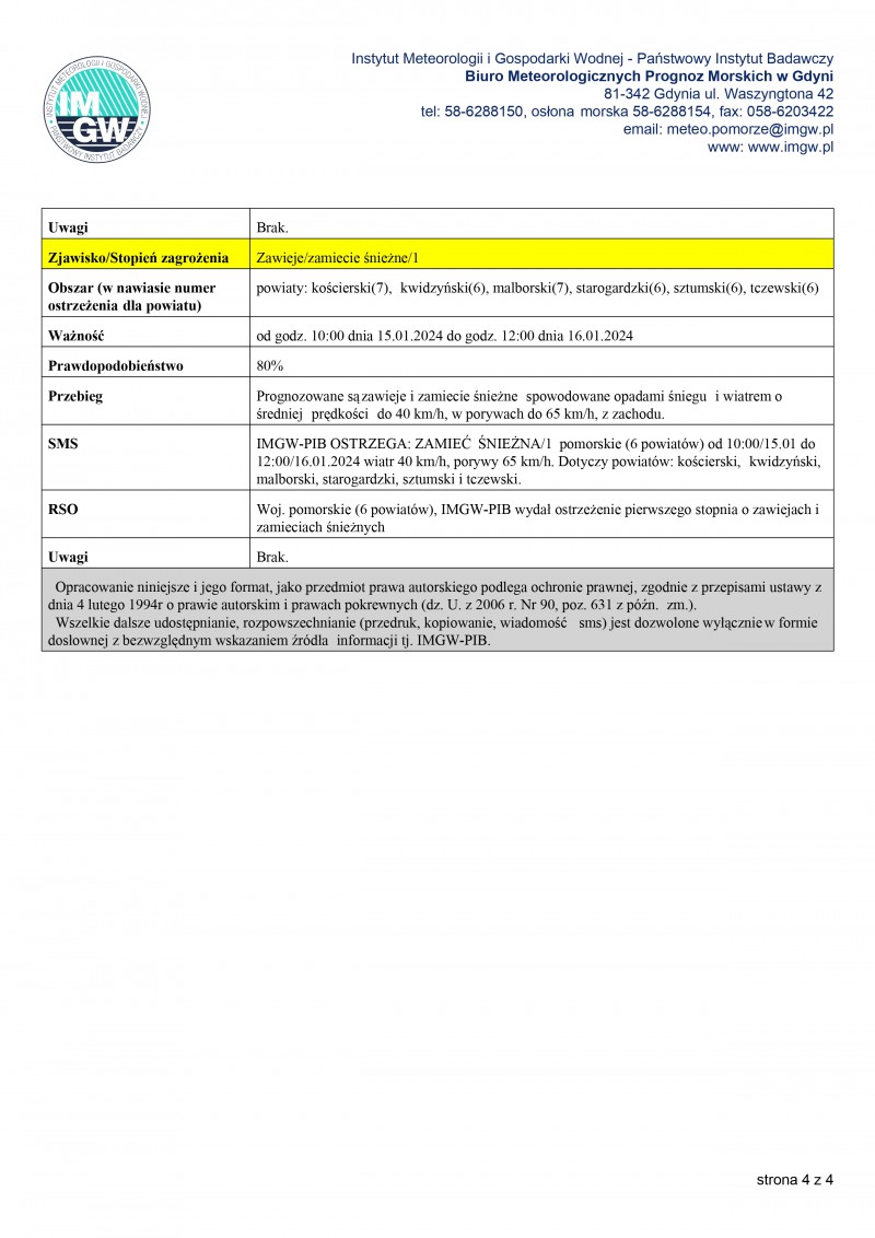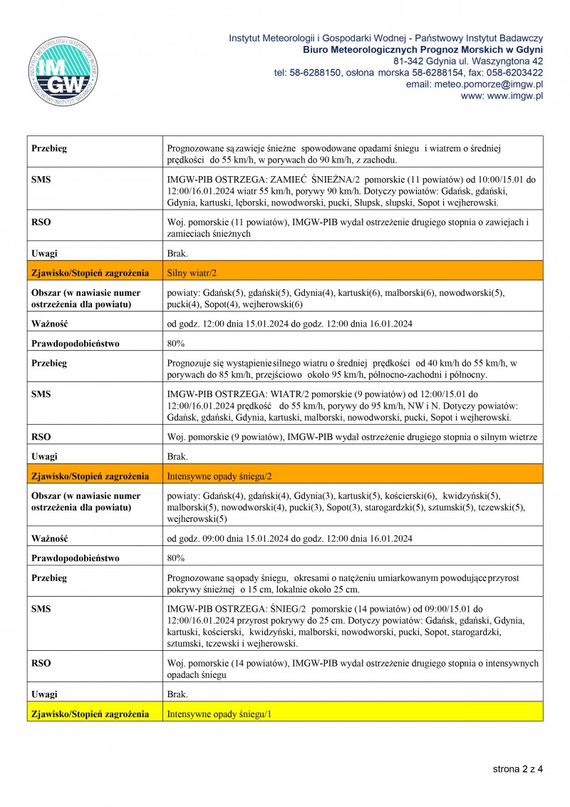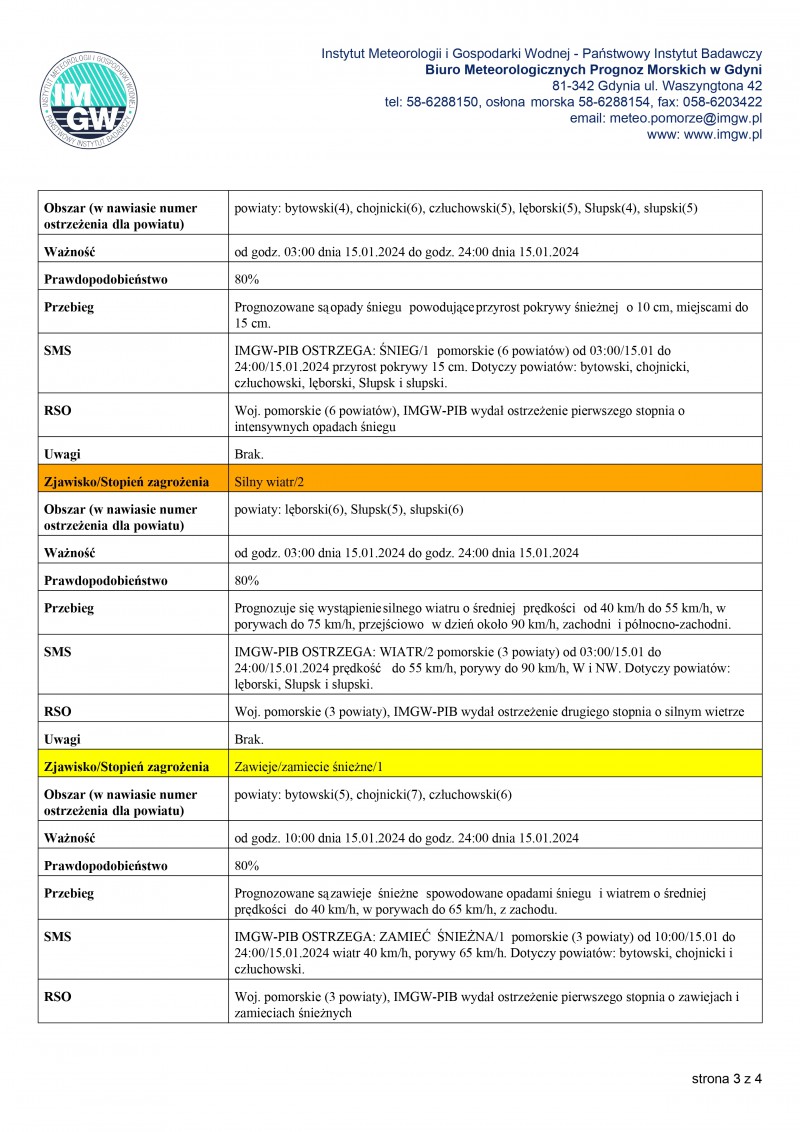 Ostrzeżenie - Silny wiatr oraz instnsywne opady śniegu
