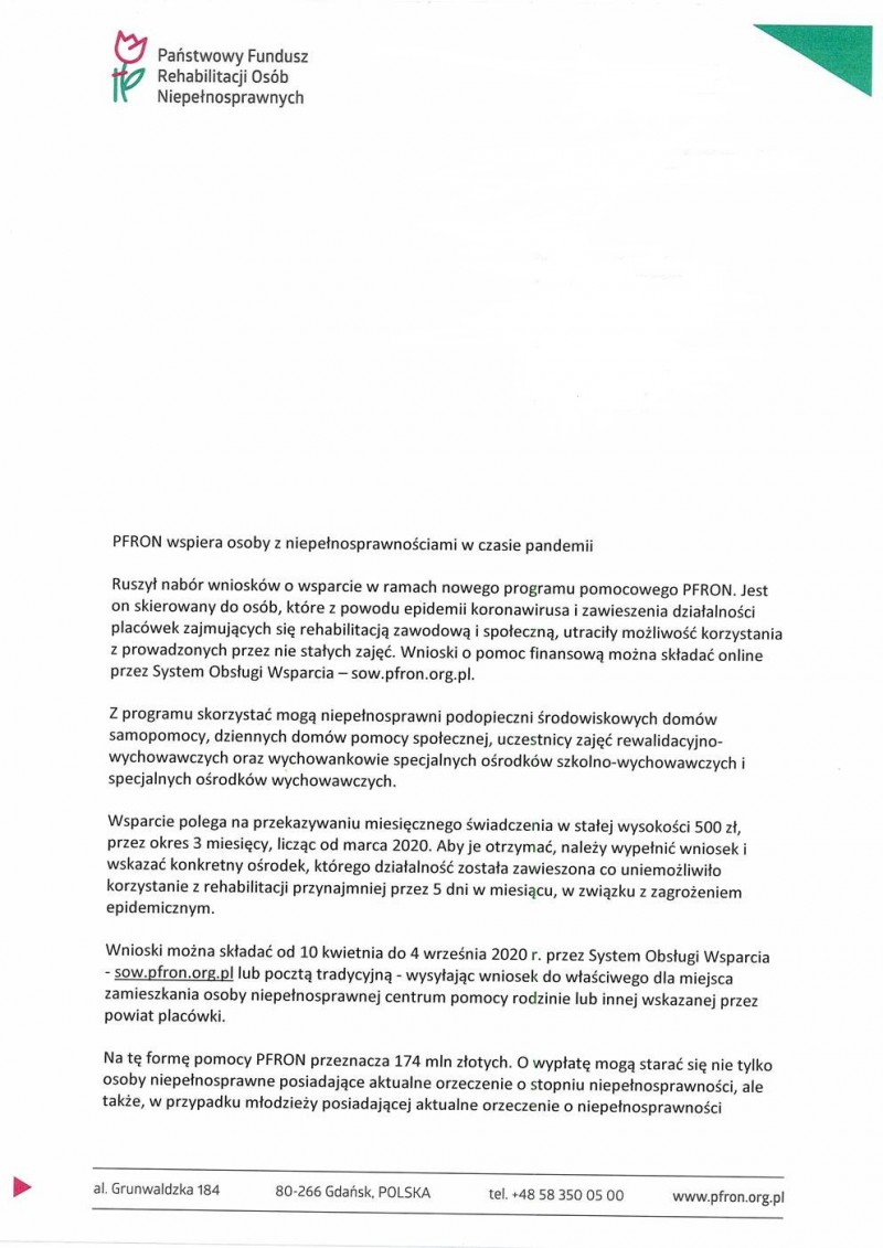PFRON wspiera osoby z niepełnosprawnościami w czasie pandemii