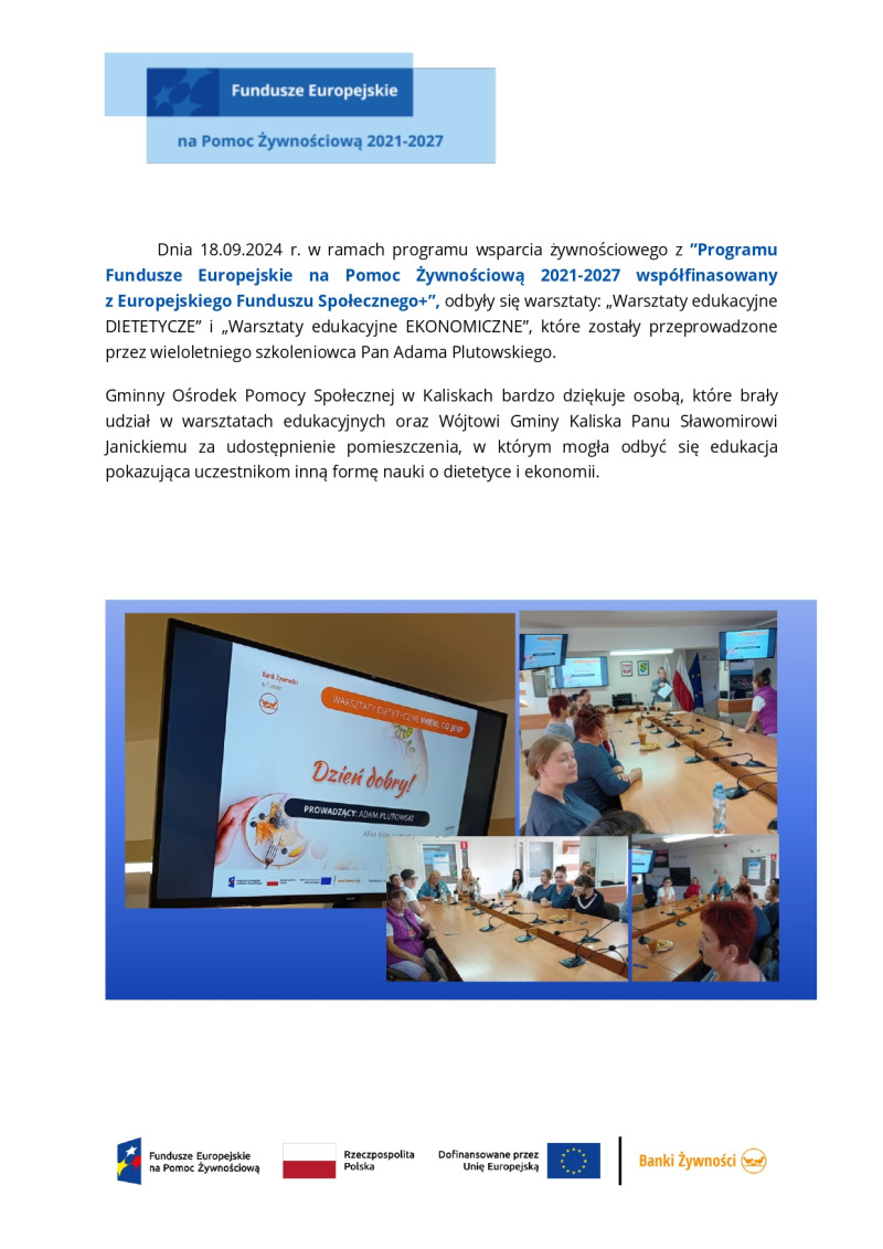 Warsztaty edukacyjne DIETETYCZNE I EKONOMICZNE''