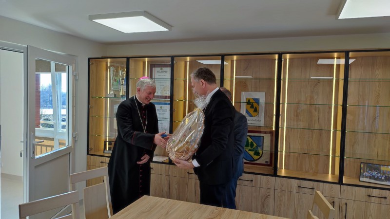 W czwartek 24 marca 2022 r. Urząd Gminy w Kaliskach odwiedził Biskup Diecezji Pelplińskiej ks. dr Ryszard Kasyna. Biskupowi towarzyszył Ksiądz Józef Słupski Proboszcz Parafii Matki Bożej Nieustającej Pomocy Kaliskach. Podczas wizyty Wójt Gminy pokrótce zrelacjonował bieżące działania samorządu, prowadzone inwestycje i inne zadania realizowane dla mieszkańców. Ksiądz Biskup docenił pracę samorządu i jego starania podejmowane na rzecz mieszkańców, a także wyraził swoje zadowolenie z dotychczasowej współpracy Gminy z Parafią - z Księdzem Proboszczem Józefem Słupskim na czele.