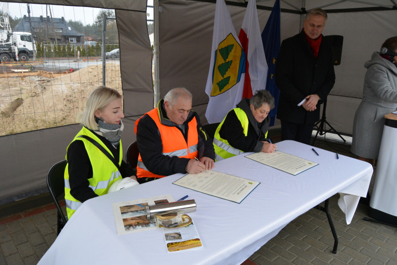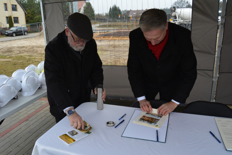 Po podpisaniu aktu Wójt Gminy Kaliska Sławomir Janicki wraz z Przewodniczącym Rady Gminy Kaliska Zbigniewem Szarafinem umieścili w stalowej tubie następujące przedmioty: akt erekcyjny, Kaliski Goniec, zdjęcia z budowy, pieniądze (drobne monety i najmniejszy nominał banknotu) oraz herb Gminy Kaliska.