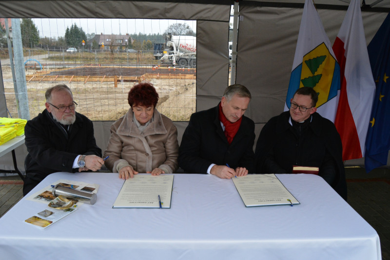 Dnia 9 grudnia miało miejsce uroczyste podpisanie aktu erekcyjnego oraz wmurowanie kamienia węgielnego pod budowę nowego Żłobka dla dzieci do lat trzech w Kaliskach. To wyjątkowa, nowoczesna i długo oczekiwana inwestycja, która zapewni potrzeby najmłodszych dzieci i rodziców z naszej gminy, a jednocześnie przyczyni się do zwiększenia atrakcyjności naszej gminy.