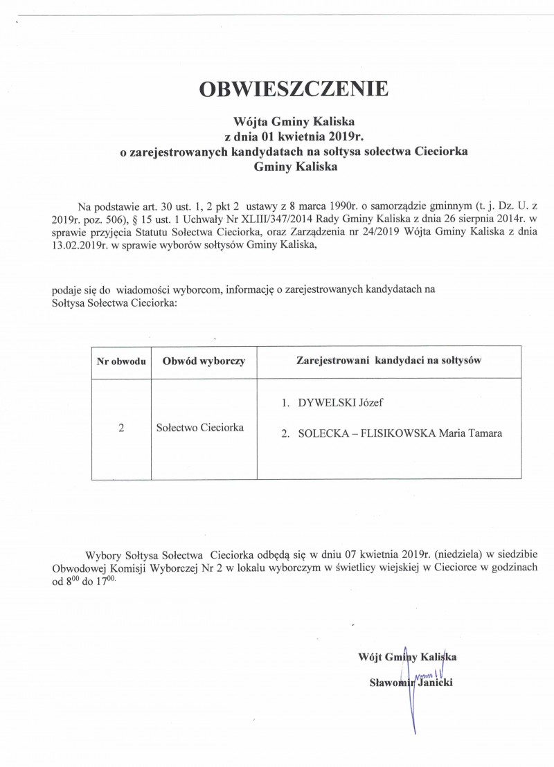Wybory Sołtysa Sołectwa Cieciorka dnia 07.04.2019 r.