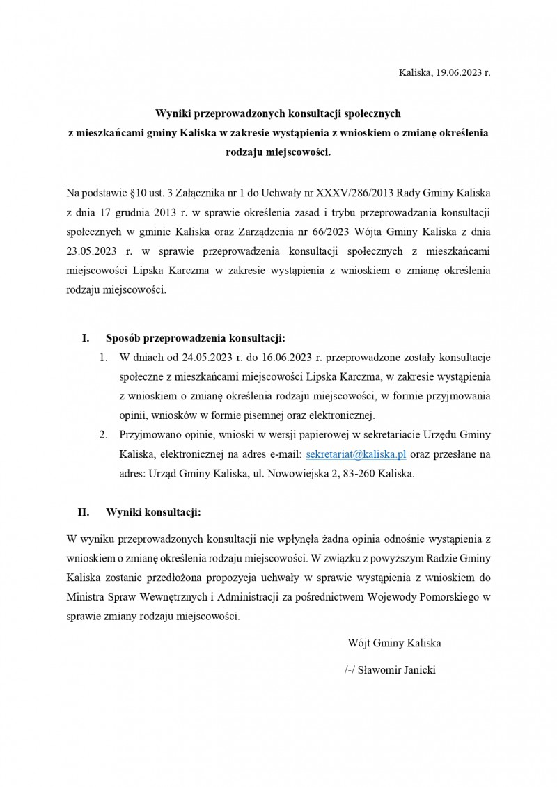 Wyniki przeprowadzonych konsultacji z mieszkańcami