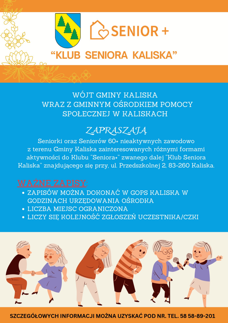 Zapraszamy Seniorki oraz Seniorów 60+ do Klubu Seniora Kaliska