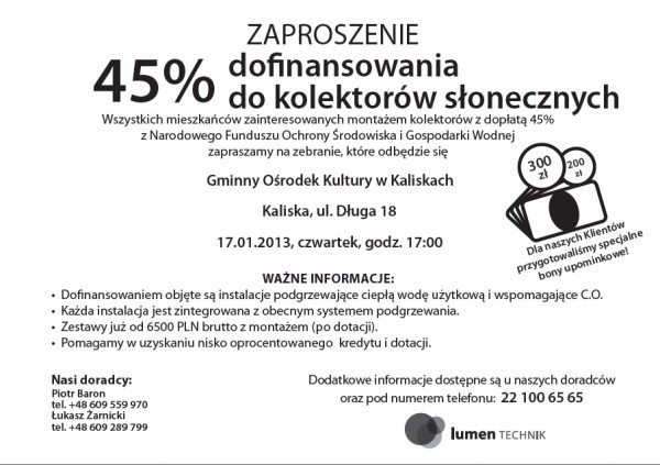Zaproszenie - dofinansowanie do kolektorów słonecznych