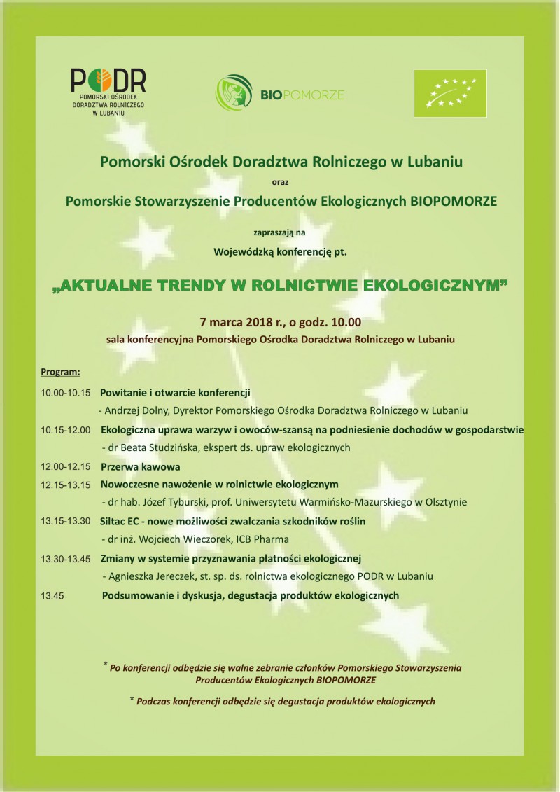 Zaproszenie na Wojewódzką Konferencję ,,Aktualne Trendy w Rolnictwie Ekologicznym''