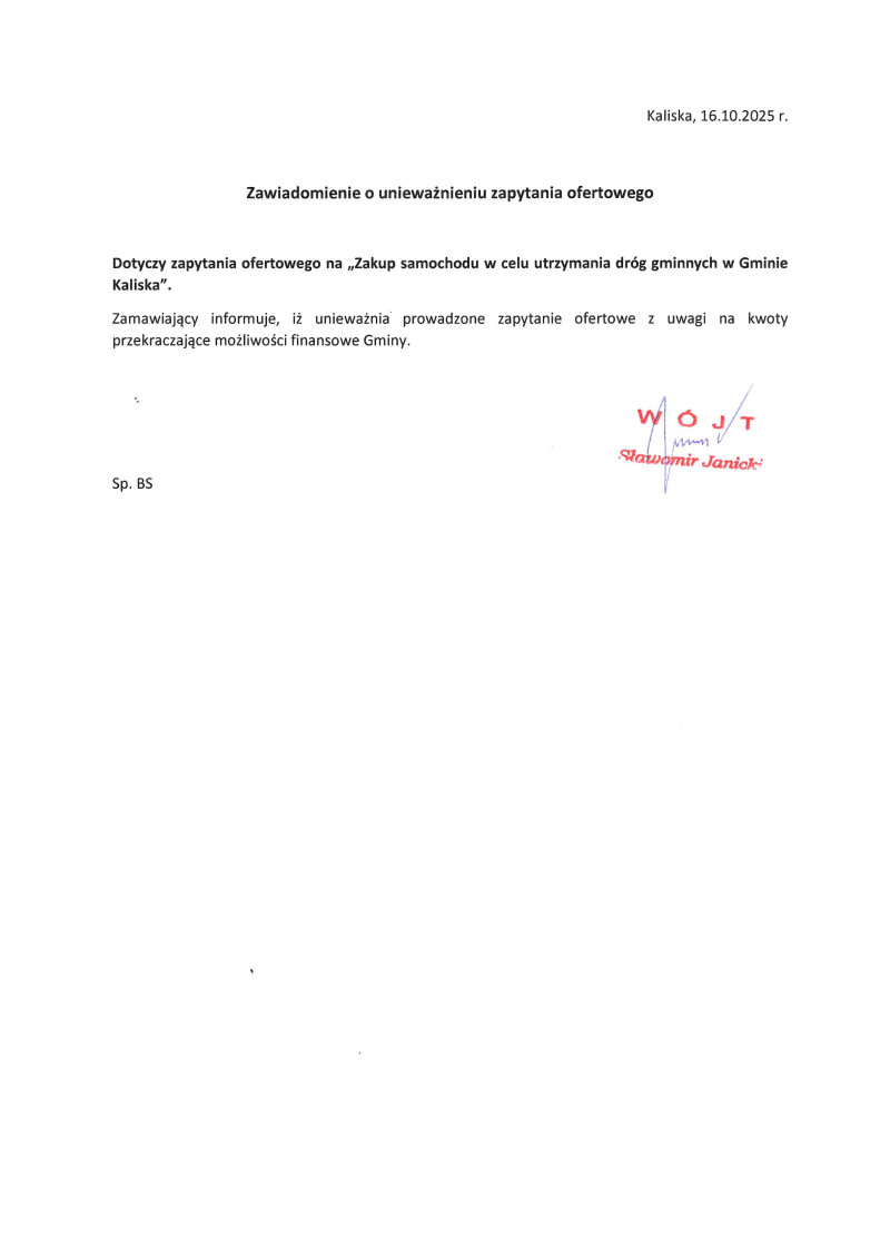 Zawiadomienie o unieważnieniu zapytania ofertowego