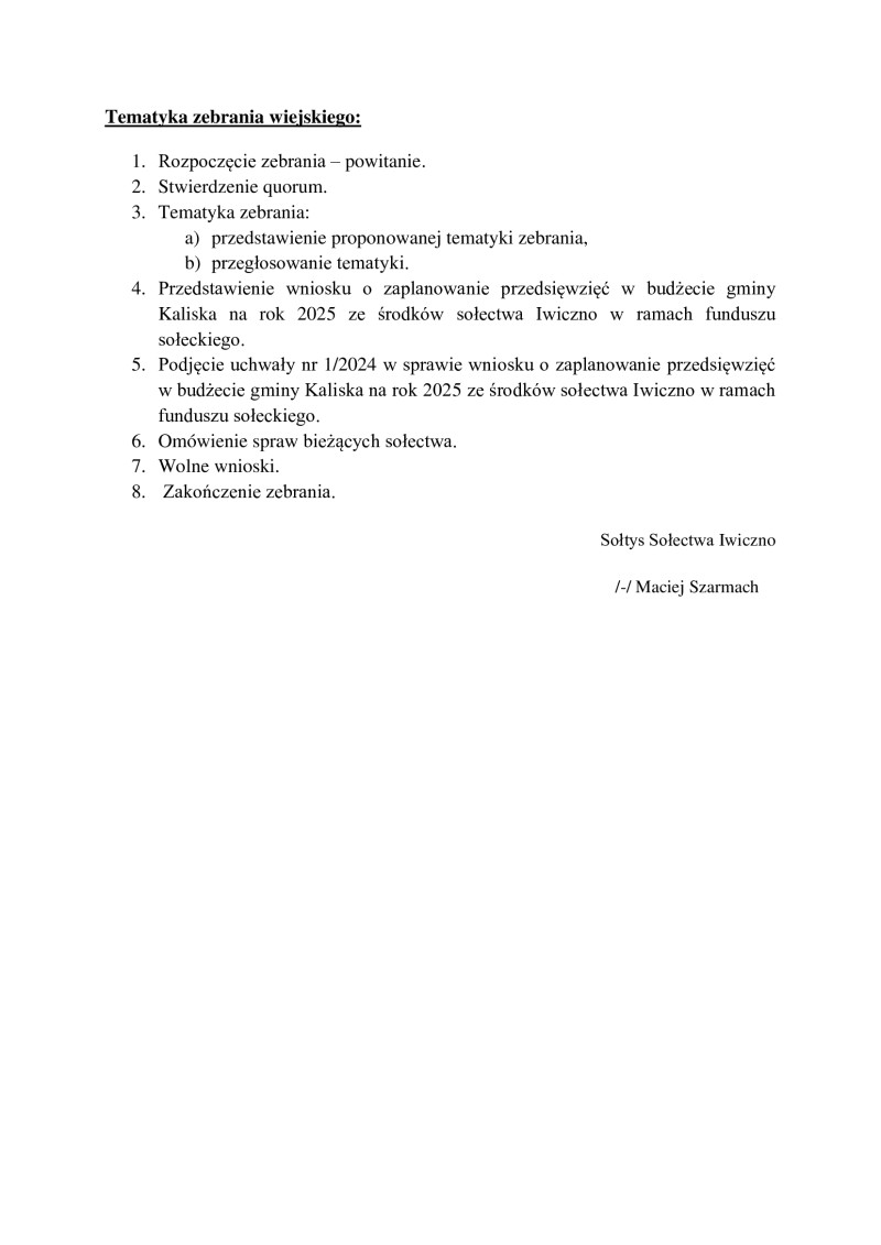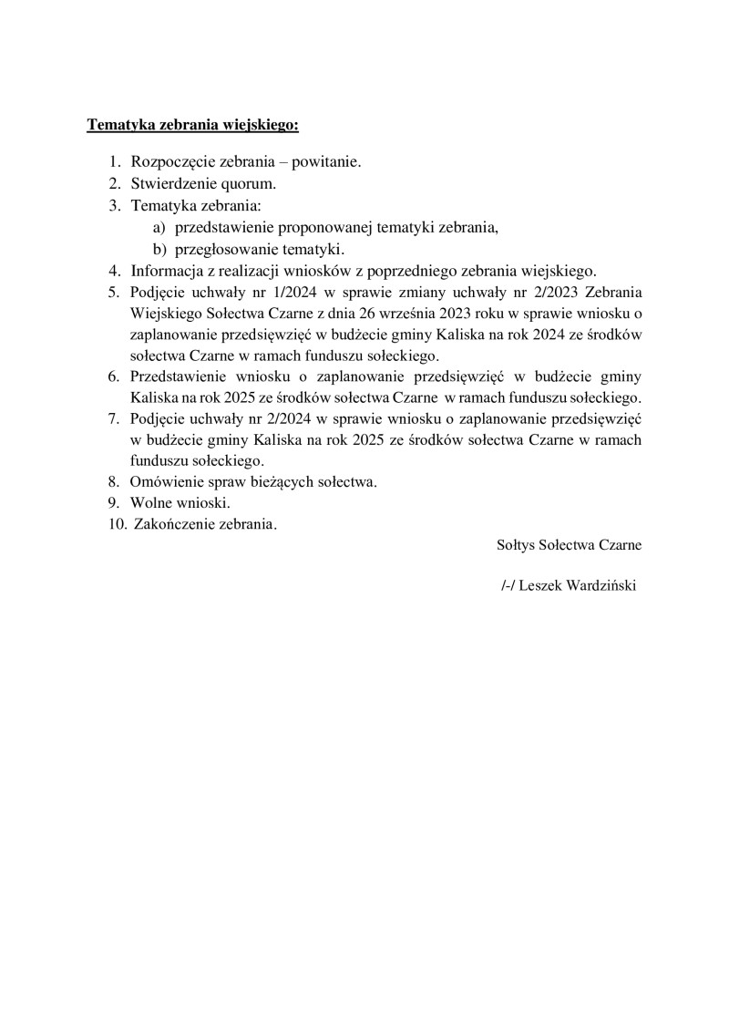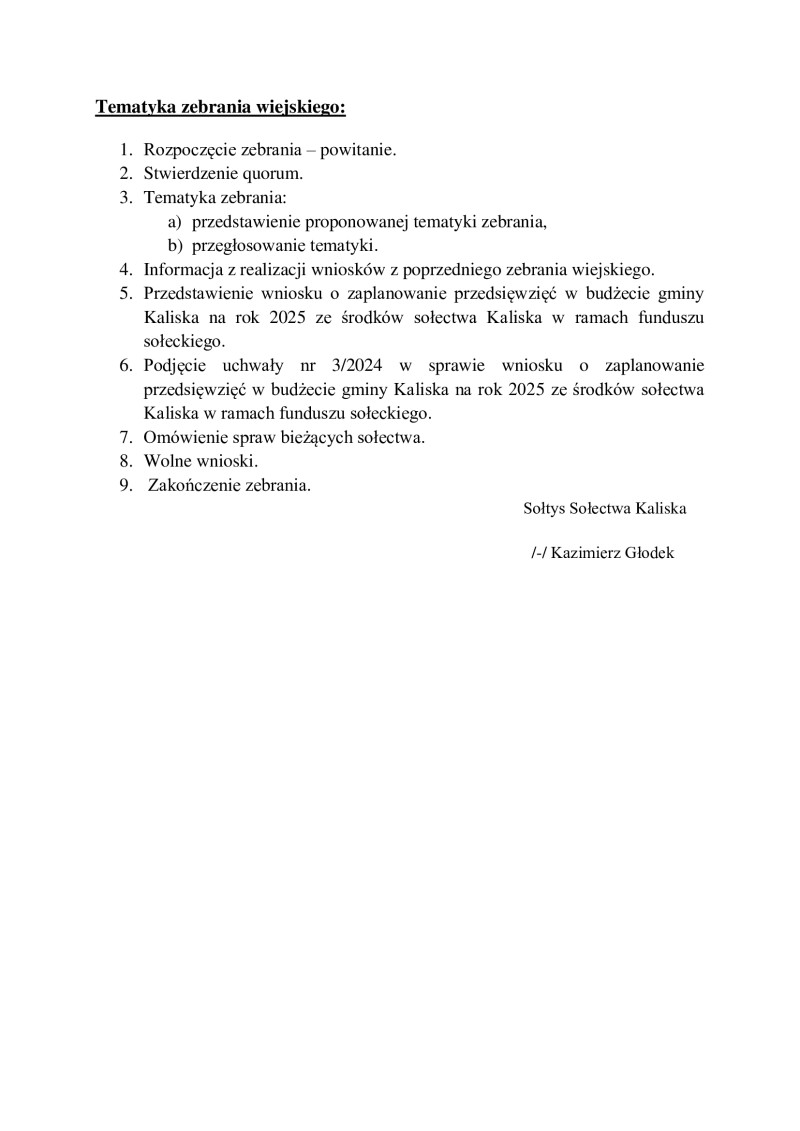 Przewodniczący Rady Gminy Kaliska Zbigniew Szarafin zaprasza na X Sesję Rady Gminy Kaliska