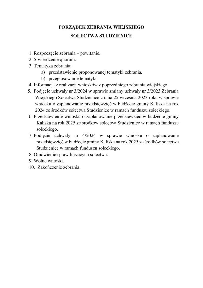 Zaproszenie na XXIII Sesję Rady Gminy Kaliska