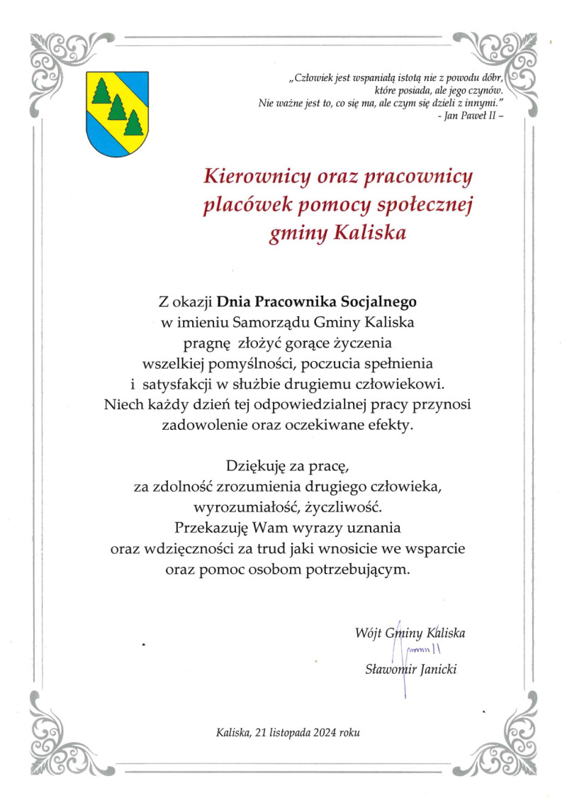 Życzenia z okazji Dnia Pracownika Socjalnego