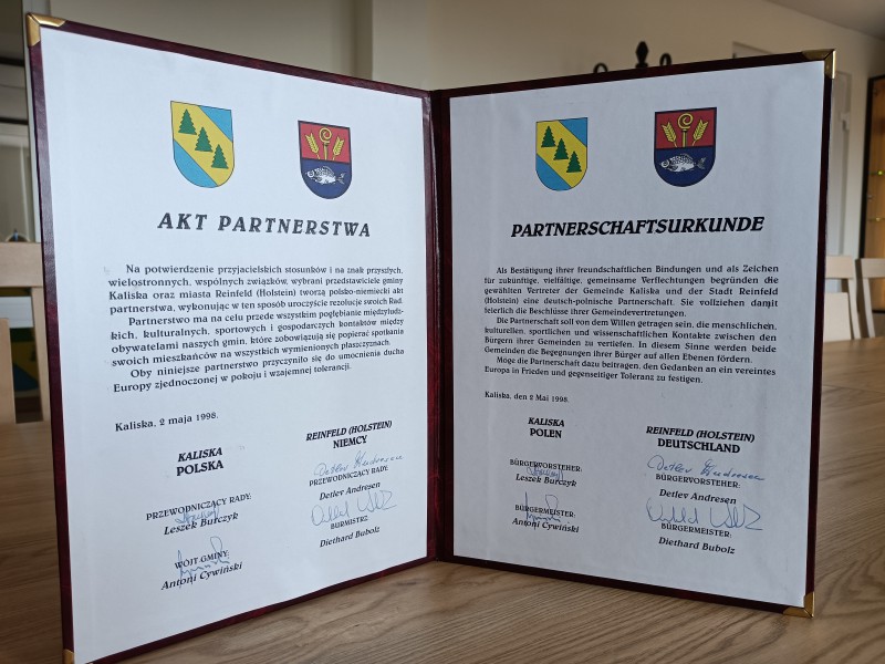 Uroczyste podpisanie Aktu Partnerstwa miało miejsce 2 maja 1998 roku w kościele parafialnym w Kaliskach. Dnia 22 maja 1998 roku, w Reinfeld, nastąpiło powtórne złożenie podpisów pod Aktem Partnerstwa.