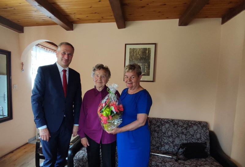Dnia 26 maja 2023 r. Pani Elżbieta Nieckarz obchodziła 95 urodziny. Z tej okazji Szanowną Jubilatkę odwiedził Wójt Gminy Kaliska Sławomir Janicki wraz z Kierownikiem Gminnego Ośrodka Pomocy Społecznej w Kaliskach Sylwią Drewczyńską.