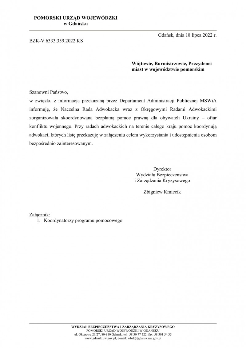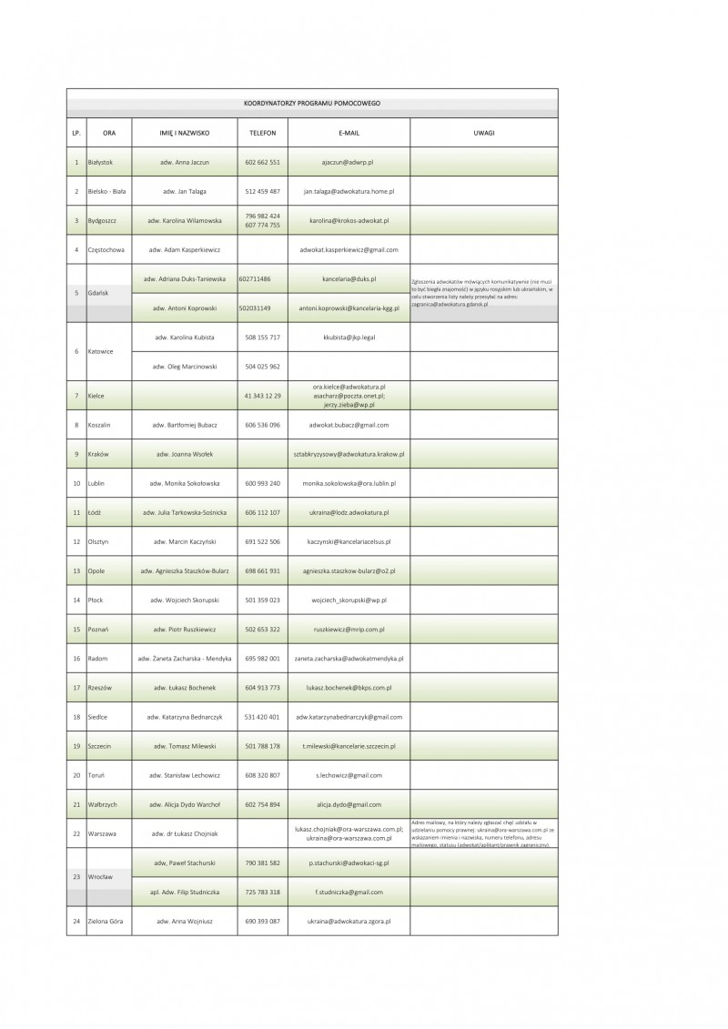 Koordynatorzy bezpłatnej pomocy prawnej dla obywateli Ukrainy