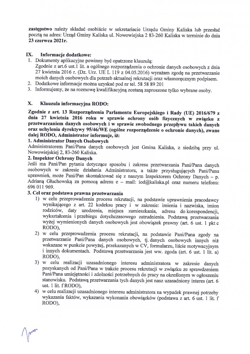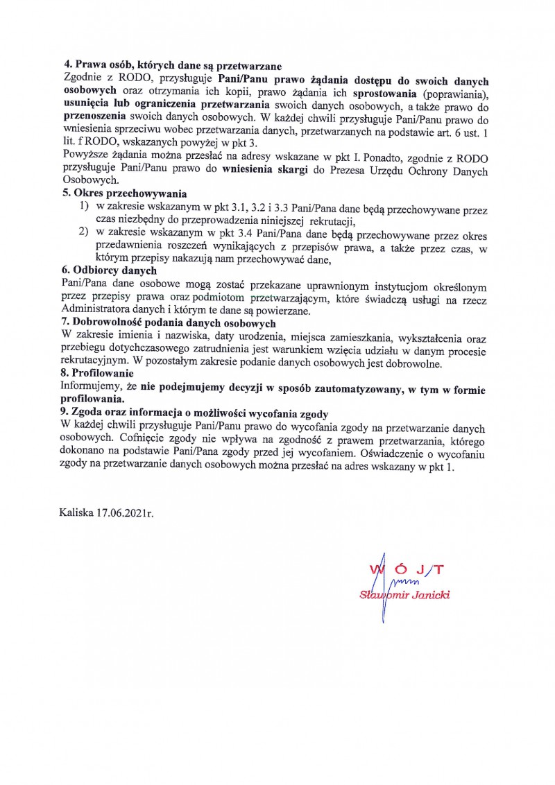 Ogłoszenie o naborze na wolne stanowisko pracy ,,Specjalista ds. techniczno-administracyjnych - Inspektor''