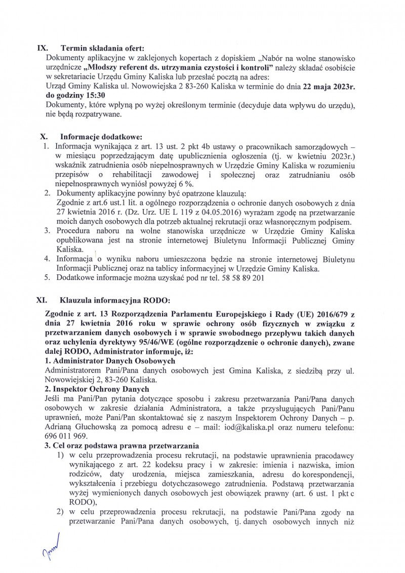 Ogłoszenie w sprawie naboru na wolne stanowisko urzędnicze - Młodszy referent ds. utrzymania czystości i kontroli