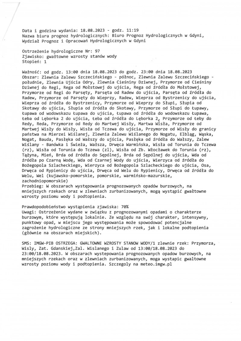 Ostrzeżenie hydrologiczne - woj. pomorskie