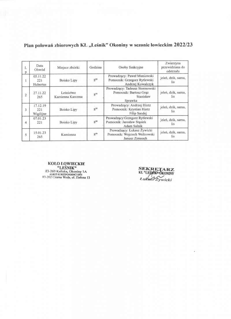 Plan polowań zbiorowych Koła Łowieckiego „Leśnik”
