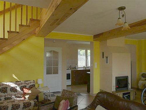Położenie: 100m od jeziora Kazub, do rzeki Wdy 15km, otoczona lasem. Kwatera całoroczna z czterema pokojami – łącznie 8 osób, salonem kominkowym, łazienką (WC osobno) i aneksem kuchennym. Osobno toaleta. Wyżywienie we własnym zakresie, możliwość kupna żywności wiejskiej. Taras z ogrodem. Możliwość ustawienia namiotu i przyczepy kempingowej. Możliwość wędkowania, trasy turystyczne, przejażdżki bryczką, miejsce na ognisko i grill..